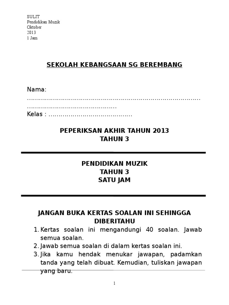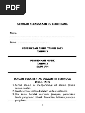 Soalan Pendidikan Muzik Tahun 3 Pdf